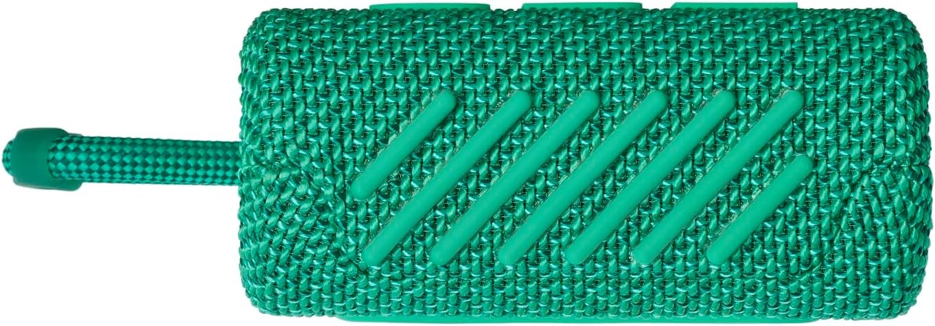 - ULTRA-PORTABLE DESIGN: JBL Go 3 ECO’s ultra-portable design goes great with the latest styles, and its colorful fabrics and expressive details make it look as great as it sounds.